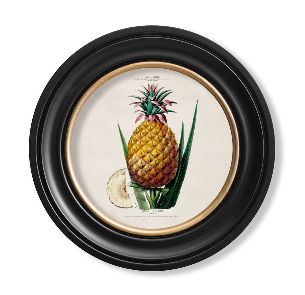 C.1843 Vintage Pineapple Plant Print with Round Frame