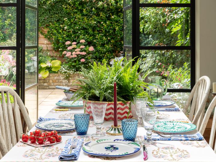 Elevate your dining experience with this exquisite Fanfair pure cotton tablecloth, featuring a captivating traditional Moghul block print artfully displayed on a pristine white backdrop. Adorned with a delightful floral border, meticulously handcrafted to add a touch of elegance to your table setting. This tablecloth is thoughtfully designed to harmonise seamlessly with the Fanfair napkins, creating a visually stunning dining arrangement. Experience the timeless charm of hand block printing with these exceptional designs.