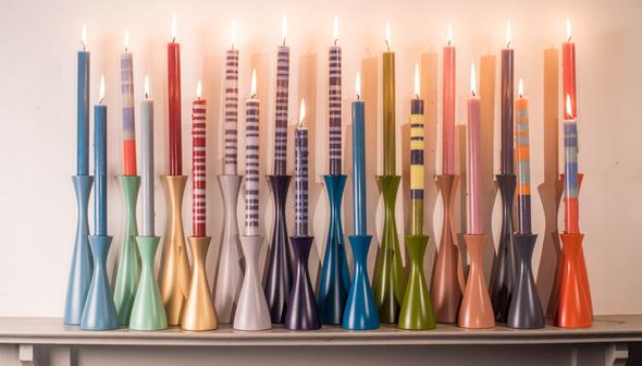 These handmade modern candle holders are made from solid wood off-cuts and painted in vibrant and stylish tones to complement any interior scheme. An eco approach has been taken to produce these products, which are hand-turned in a small family workshop in India. Available in two sizes and 15 colours they will make for a simple yet elegant addition to your home. Mix and match both sizes and dress up any dining table or sideboard. Each candle holder comes with a pad attached to the base to protect the table and is presented in a smart, branded gift box. Fair Trade made in India.