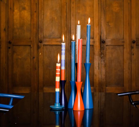These handmade modern candle holders are made from solid wood off-cuts and painted in vibrant and stylish tones to complement any interior scheme. An eco approach has been taken to produce these products, which are hand-turned in a small family workshop in India. Available in two sizes and 15 colours they will make for a simple yet elegant addition to your home. Mix and match both sizes and dress up any dining table or sideboard. Each candle holder comes with a pad attached to the base to protect the table and is presented in a smart, branded gift box. Fair Trade made in India.