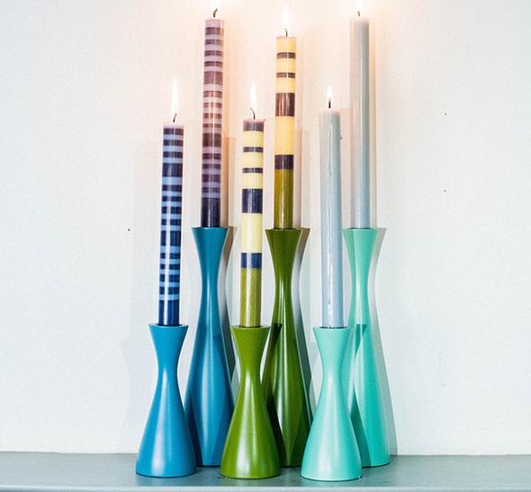These handmade modern candle holders are made from solid wood off-cuts and painted in vibrant and stylish tones to complement any interior scheme. An eco approach has been taken to produce these products, which are hand-turned in a small family workshop in India. Available in two sizes and 15 colours they will make for a simple yet elegant addition to your home. Mix and match both sizes and dress up any dining table or sideboard. Each candle holder comes with a pad attached to the base to protect the table and is presented in a smart, branded gift box. Fair Trade made in India.