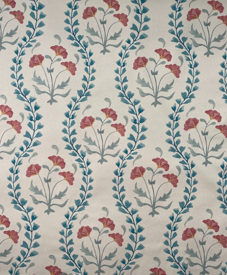 This striking fabric is inspired by the East, this is a larger scale version of the original Iznik Vine. Both fabrics depict a beautiful weaving jade-coloured vine mingled with delicate Moghul-style poppies however, this larger scale is printed on washed Panama cotton.