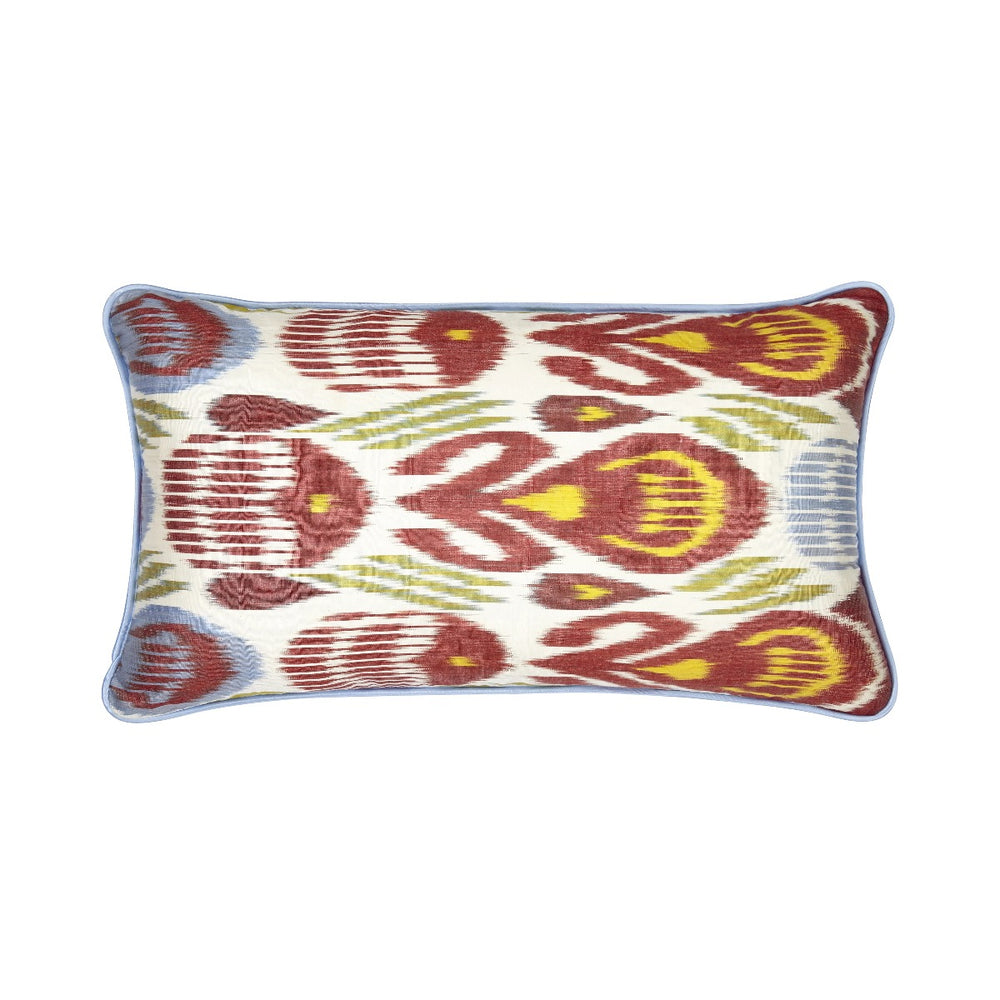 Luxury Silk Rectangular Green, Red, Blue & Yellow Ikat Cushion