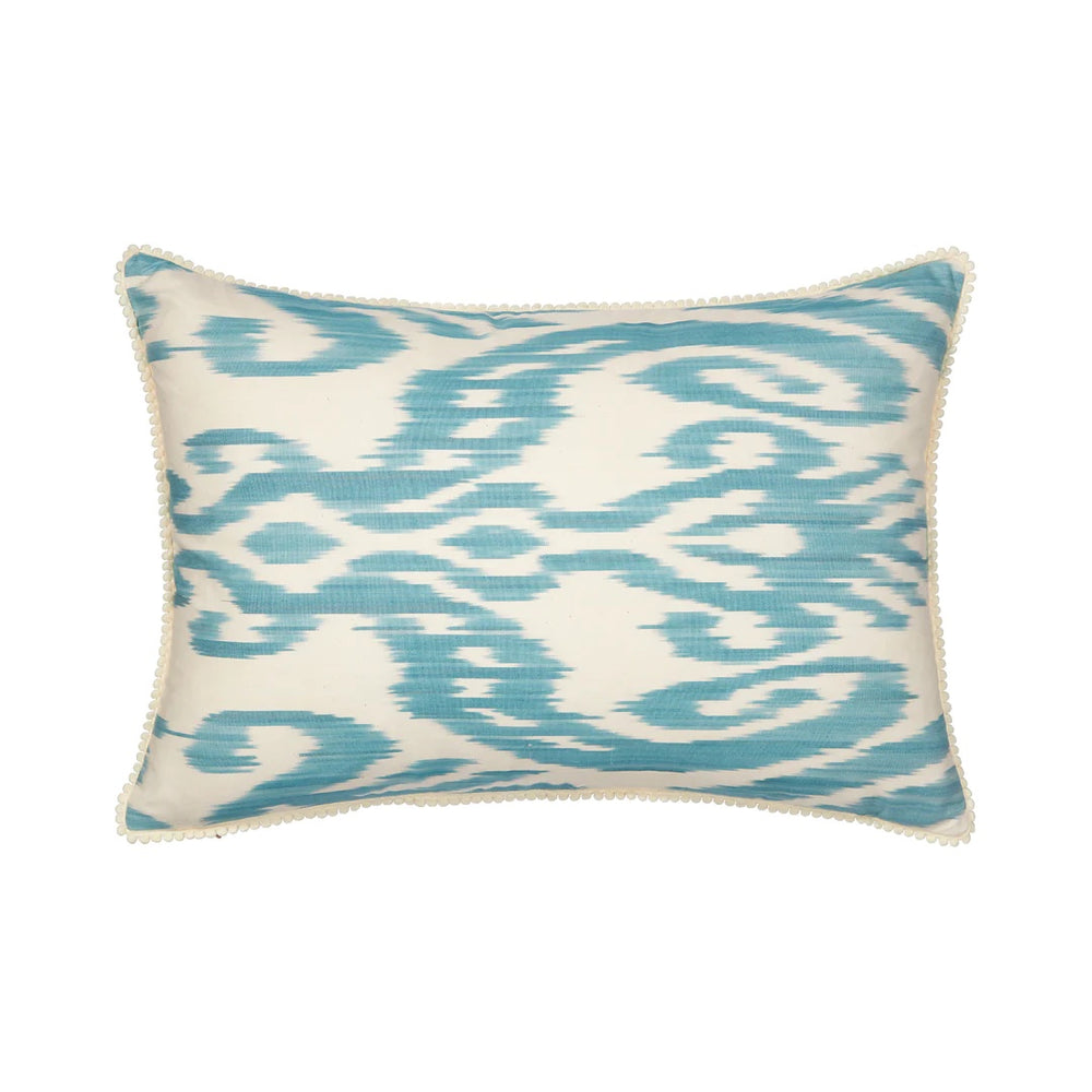 Luxury Silk Rectangular Light Blue & Cream Ikat Cushion