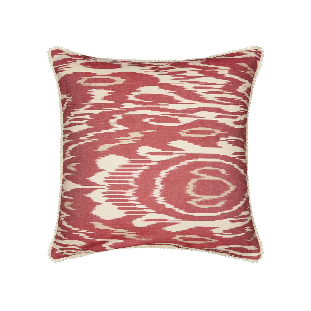 Luxury Silk Square Burnt Red & Cream Ikat Cushion