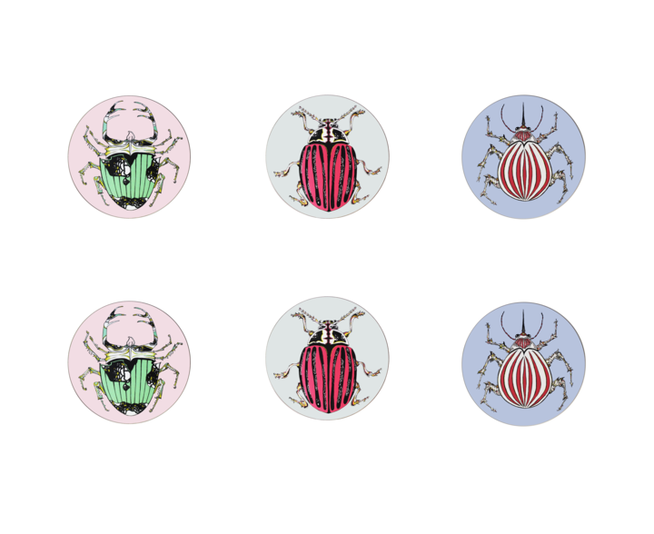 Mixed Set of 6 'Beetle' Pastel Coasters