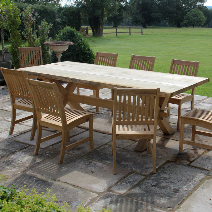 solid oak garden dining crossed leg dining table